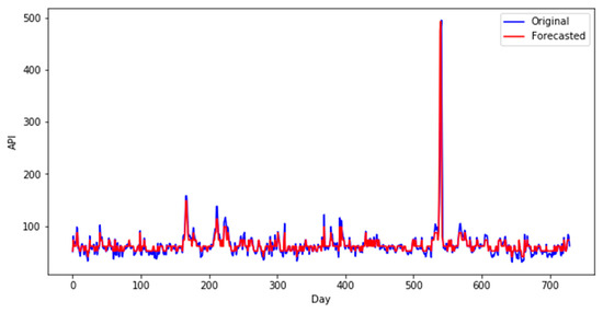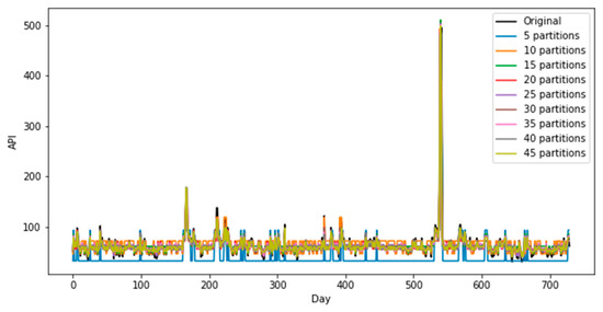 More specifically, Figure 7 shows that the proposed model using the best number of partitions provides greatly improved performance in air pollution index prediction accuracy compared with the other petition numbers. This indicates that the proposed model produces accurate predicting results of the air pollution index.