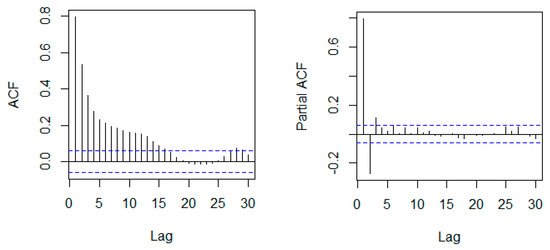 In this study, the daily API maxima values, which were gathered from an air monitoring station located in Klang, Malaysia, are considered in the analysis. The city of Klang is located nearly 32 km to the west side of Kuala Lumpur and covers a land area of about 573 km2, as shown in Figure 2. The API dataset is divided into a training dataset, which is from the 1 January 2012 to 31 December 2013 and testing dataset, which is from the1 January 2014 to 31 December 2014. The values of API recorded at the selected monitoring station are provided by the Department of Environment of Malaysia. The total number of observations in this study is 1096. The value of API of less than 100 denotes a good air quality, while a of API greater than 100 indicates a higher degree of air pollution. The classification of states is made based on the breakpoints for API of 50, 100, 200, 300, and 300+, corresponding to good, moderate, unhealthy, very unhealthy, and hazardous states, respectively, as shown in Table 1 [3,45].