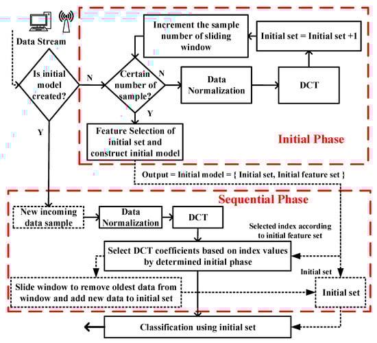 A novel, efficient incremental feature extraction approach-based DCT is developed for the data stream to overcome the computation cost and time complexity problems.