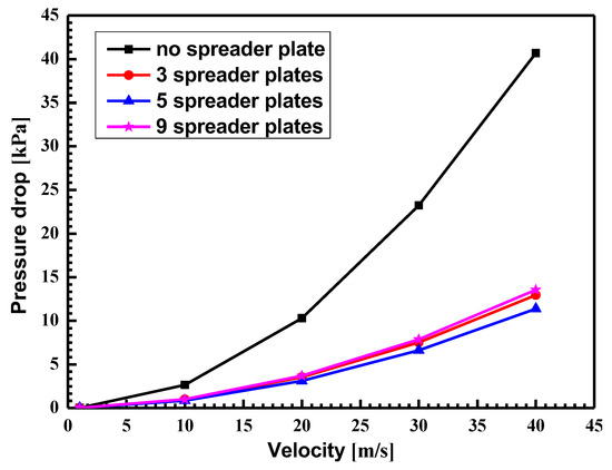 Variation in the pressure drop with different numbers of spreader plates.