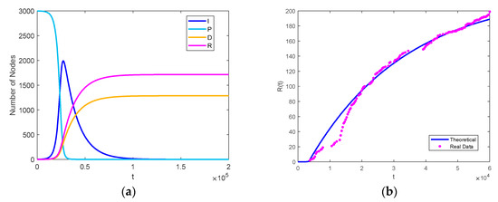 Similarly, we assume that the probability of an I node transferring into a D node is drawn from the exponential probability with parameter , and the probability of the transition from I to RI is drawn from the exponential probability with parameter [10], then we have