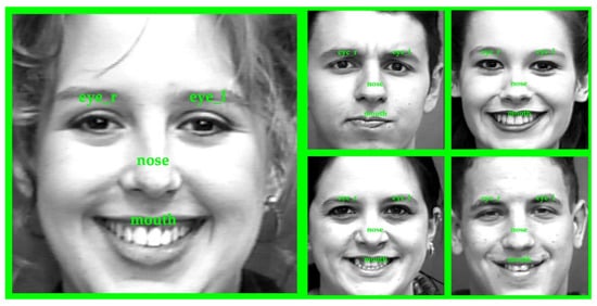 - Zhang, Z.; Luo, P.; Loy, C.C.; Tang, X. Facial landmark detection by deep multi-task learning. In European Conference on Computer Vision, Proceedings of the ECCV 2014, Zurich, Switzerland, 6–12 September 2014; Springer: Cham, Switzerland, 2014. [Google Scholar]