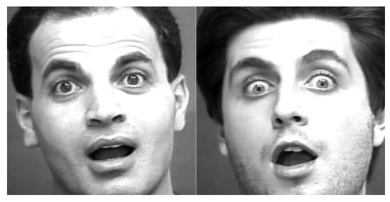 - Lucey, P.; Cohn, J.F.; Kanade, T.; Saragih, J.; Ambadar, Z.; Matthews, I. The extended cohn-kanade dataset (ck+): A complete dataset for action unit and emotion-specified expression. In Proceedings of the 2010 IEEE Computer Society Conference on Computer Vision and Pattern Recognition-Workshops, San Francisco, CA, USA, 13–18 June 2010. [Google Scholar]