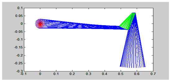 In this process, the type of finite element chosen will determine the shape functions that will be used and which will give the final form of the coefficients of the matrix appearing in the equations of motion. In such an analysis, it is considered that the deformations are small enough to not have influence on the general, rigid motion of the multibody system. Thus, a large class of systems has been studied, having in their structure elastic elements modeled with one-dimensional, two-dimensional or three-dimensional finite elements. One-dimensional finite elements were among the first studied. We can mention here [,,,,,,]. The method was then extended naturally to bi- and three-dimensional elements [,,].