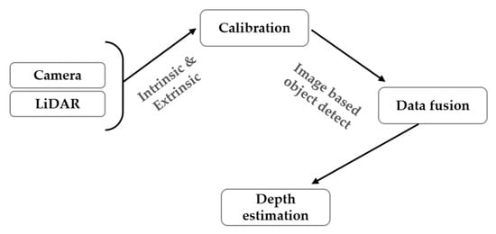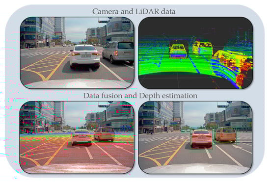 In addition, the statistical analysis of the experimental results conducted in real-road scenarios with a custom vehicle setup proves the potential of the proposed method for use with an autonomous system for the depth estimation of vehicles in the surrounding environment. As compared to other data fusion approaches, the proposed method able to accurately estimate the extrinsic parameters and to perform a data fusion and determines the object distance. Future work toward the refinement of the proposed data fusion approach includes point cloud distortion compensation using inertial measurement unit (IMU) sensors and the elimination of the limitation of the operating frequency of the data fusion process by using interpolation methods.