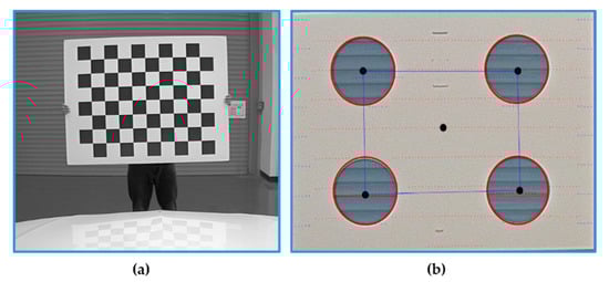 In this paper, two different types of marker boards are used for the intrinsic and extrinsic parameter estimation. The internal characteristics of the camera, such as the focal length, skew distortion, and image center are estimated by the camera’s intrinsic calibration using the checkerboard marker shown in Figure 5a. This is an essential step in calibrating the LiDAR and camera for data fusion, and the calibration results contain the camera matrix, distortion coefficients, and camera projection matrix.