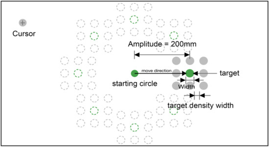 - Blanch, R.; Ortega, M. Benchmarking pointing techniques with distractors: Adding a density factor to Fitts’ pointing paradigm. In Proceedings of the SIGCHI Conference on Human Factors in Computing Systems, Vancouver, BC, Canada, 7 May 2011. [Google Scholar]