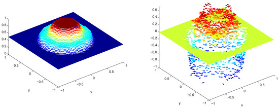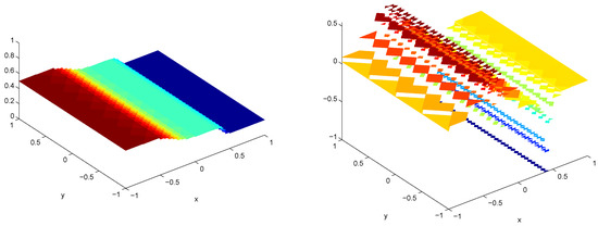 If two cells are coarsened, then the new cell has quantity values that are computed from the quantity values of the two old cells with respect to area-based weights. That is, supposed that two trianglesandare coarsened to be the triangle T. The quantity of the triangle T is computed aswheremeans the area of the triangle T. In all of our 1D, 1.5D, and 2D cases in this paper,