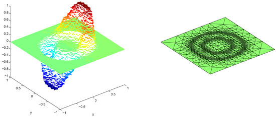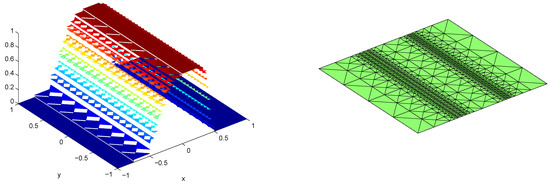 Remark 4. The tolerance for the weak local residuals is a matter of choice to the users of the proposed method. If the tolerance is too strict, then the refinement will be excessive, but if the tolerance is too loose then the mesh will be too coarse. We indicate that the tolerance is about 5% of the maximum weak local residual for the refinement and 0.5% of the maximum weak local residual for the refinement. That is, if a cell has the value of residual which is larger than 5% of the maximum weak local residual, then the cell must be refined as long as the cell area has not reached the minimum value of the allowed area. If a cell has the value of residual which is smaller than 0.5% of the maximum weak local residual, then the cell must be coarsened as long as the cell area has not reached the maximum value of the allowed area. However, once again, the tolerance is a matter of choice of the users.