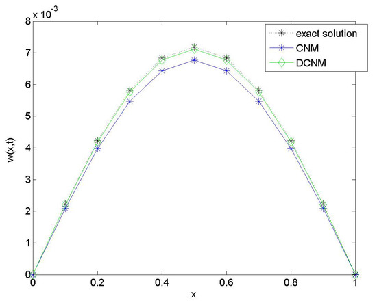 Comparison of the exact solution with solutions obtained by CNM and DCNM.