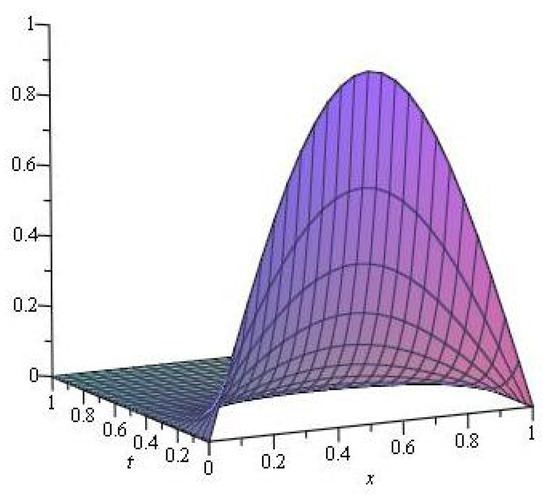 where is obtained from the initial condition with . An exact solution of the system given by the Equations (2) and (9) for particular values of arbitrary functions , , and is given in the following example.