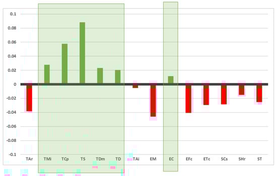 As it can be observed, when the number of criteria varies, only in one case, the one with fewest criteria subset, the result changes while the rest remains constant. This suggests that there should be a criteria subset that could provide the best selection option. We analyzed another set of scenarios, in order to identify the minimum criteria subset. To achieve this, it is interesting to take a look at resulting indexes, to identify: 1) where is the major gap among alternatives ranked, and 2) what is the trend by expanding the number of criteria. Ordering the criteria weights, it can be found that some criteria provide a very low percentage in the mix (we assume for every scenario ) (Table 27).