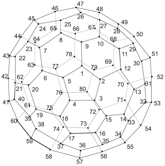 Now consider the fullerene graph () as depicted in Figure 10.