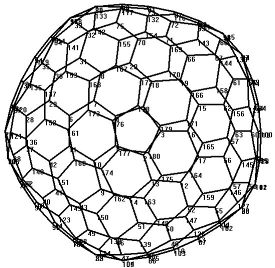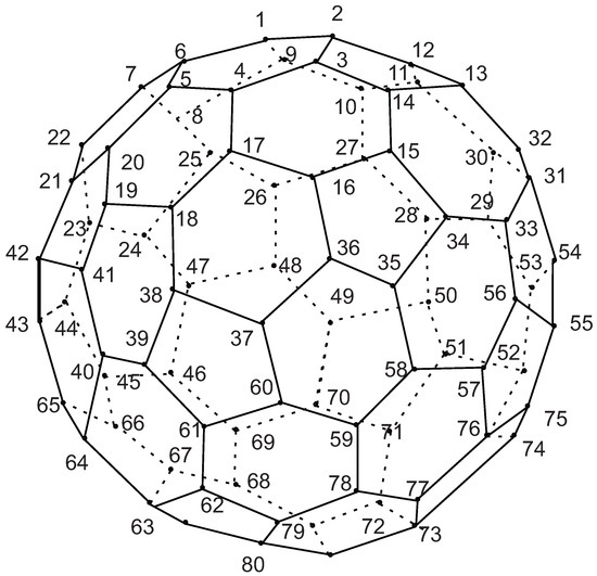 - Fowler, P.W. How unusual is C60, Magic numbers for carbon clusters. Chem. Phys. Lett. 1986, 131, 444–450. [Google Scholar] [CrossRef]
