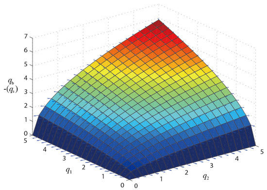 From Equation (36), since q1, q2, qb are all positive value, λ3, λ4, λ5, and λ7 are always greater than zero. Set both λ6 and λ8 equal to zero, the relationship among q1, q2, qs is obtained as