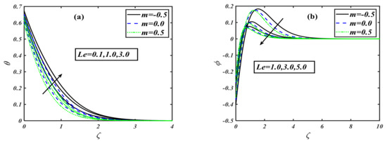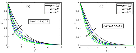 The nanoparticles concentration profile declines as the Lewis number and Brownian motion parameter values increase.