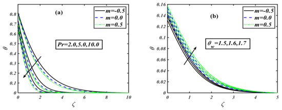 The temperature of the surface is assumed as , while the volume fraction for nanoparticles and the density of the microorganisms at the surface are denoted as respectively. are the free-stream temperature, concentration of nanoparticles, and the density of the microorganisms. Some researcher used the as [35,36]: