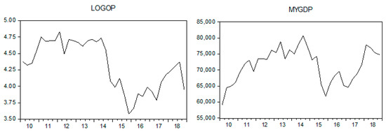 To measure the financial development, we used the country’s domestic variable, the GDP. Among the major economies of Asia, Malaysia is the second largest liquefied natural gas exporter in the world. According to the BP Statistical Review of World Energy, in 2015, 693,000 barrels of oil were produced in Malaysia and the average output over the past five years was 654,000 a day. The shipments of crude petroleum, petroleum products, and liquefied natural gas accounted for approximately 14% of Malaysia’s total exportations in the first half of the year 2016. Energy is a key sector of Malaysia’s GDP. As Malaysia is an oil net exporter, a high crude oil price may benefit the country in the short term. However, it can also be a disadvantage, since the rising prices of oil will have an impact on the world’s growth, which could affect the world’s consumption and income. Therefore, the focus of this study was to investigate the structural changes in and correlations between the price of crude oil and the GDP in Malaysia, using the Quandt–Andrews and the Bai–Perron breakpoint tests. The Markov switching regression model was used to analyze the correlations between oil price and GDP.