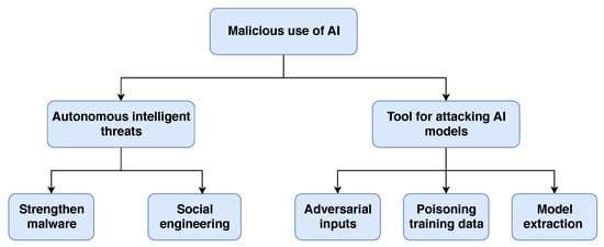 One important aspect to be taken into account is the nefarious use of AI. This technology will also be used as a way to improve threats. For example, malicious actors can leverage the ML technique to generate a hard-to-detect malware variant with machine speed. What is more, AI might be able to personalize the phishing scheme better and raise the scale of the attack, making the attack more likely to succeed. More detail about this matter discussed in Section 6.