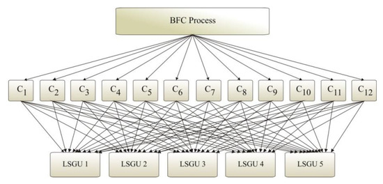 For solving criteria weighting that is multidimensional and inconsistent on both mentioned MCDM problems in the proposed model, i.e., for implementation of BFC and LBFC process, we have proposed in this paper the aggregation of the two most-used methods—AHP method from a subjective approach and method of entropy from an objective approach of MCDM in order to improve quality of factors-criteria weighting, which is described in detail in Section 2. The proposed methodology is applied to the case study of the City of Niš in the Republic of Serbia. Having in mind that the authors have already considered one other methodology of such aggregation on a similar case study for the BFC procedure in article [69], in Section 2, we presented only the results obtained by the implementation of the BFC procedure, especially because the implementation of LBFC is principally the same, normally with other criteria factors.