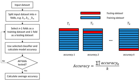 In the cross-validation method, the initial dataset is divided into k separate subsets Ti for i = 1,2,…,k. The parameter k is not strictly defined but depends on the situation and the expert’s assessment. With this method, one of the k subsets is used for testing, and the other subsets are used for training. The procedure is repeated k times and the average accuracy of the model is calculated (Figure 2). Cross-validation has an advantage over the Train&Test method because all Ti subsets are used for training as well as for testing.