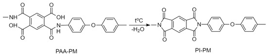 Transformation of the PAA-PM chemical structure into the PI-PM.