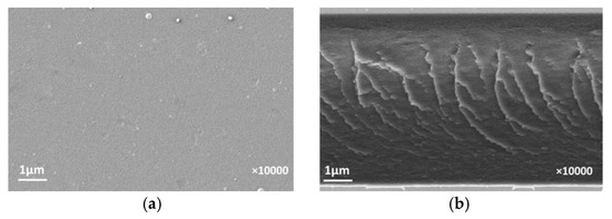 SEM images of symmetric dense membrane: (a) top layer and (b) cross-section.