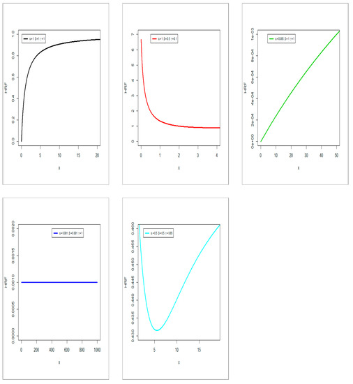where and is the upper incomplete gamma function. The MRL is given by where is the first incomplete moment of and by setting in Equation (37), we get: