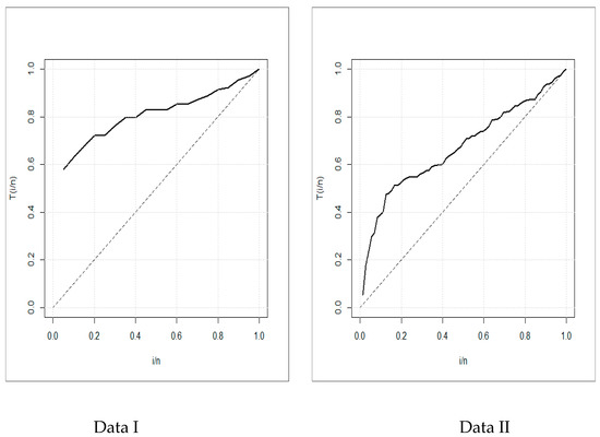The second data set (0.1, 0.33, 0.44, 0.56, 0.59, 0.72, 0.74, 0.77, 0.92, 0.93, 0.96, 1, 1, 1.02, 1.05, 1.07, 07, 1.08, 1.08, 1.08, 1.09, 1.12, 1.13, 1.15, 1.16, 1.2, 1.21, 1.22, 1.22, 1.24, 1.3, 1.34, 1.36, 1.39, 1.44, 1.46, 1.53, 1.59, 1.6, 1.63, 1.63, 1.68, 1.71, 1.72, 1.76, 1.83, 1.95, 1.96, 1.97, 2.02, 2.13, 2.15, 2.16, 2.22, 2.3, 2.31, 2.4, 2.45, 2.51, 2.53, 2.54, 2.54, 2.78, 2.93, 3.27, 3.42, 3.47, 3.61, 4.02, 4.32, 4.58, 5.55) represents the survival times (in days) of 72 guinea pigs infected with virulent tubercle bacilli, observed and reported by Bjerkedal (1960). Many other real data sets related to failure times can be found in [13,14,15,16,17,18,19,20].