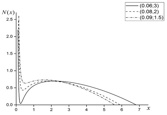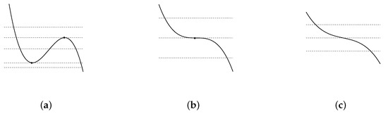 Using the profiles of the functions and we can illustrate the typical behavior of the profile of the function (see Figure 4). These profiles happen to be more sophisticated than the fold-like profile of the function , since the extrema of the functions and do not coincide.