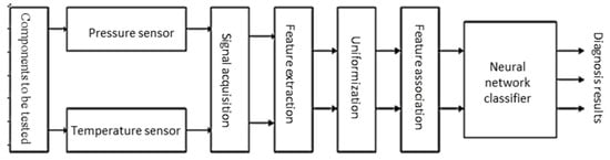 The fault diagnosis of diesel engine firstly extracts data from the fault signals to be diagnosed for preprocessing, and then the fault data to be diagnosed is input into the neural network which has finished training successfully. The fault diagnosis steps of using neural network information fusion are shown in Figure 3. Firstly, the pressure sensor is used to measure the voltage signal at the key points of the components to be diagnosed, the temperature sensor is used to test the temperature signal of the components to be diagnosed, and then the fuzzy set theory is used for analysis.