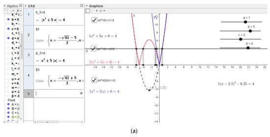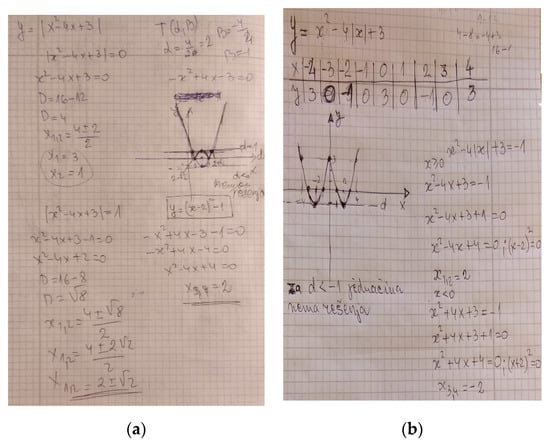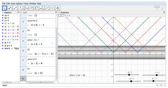 Similarly [35], we prepared the learning material for the students, presented in Appendix B. The students’ task was to sketch linear and quadratic absolute value functions and solve linear and quadratic absolute value equations in the form