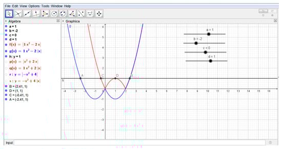- Diković, L. Applications GeoGebra into teaching some topics of mathematics at the college level. Comput. Sci. Inf. Syst. 2009, 6, 191–203. [Google Scholar] [CrossRef]
