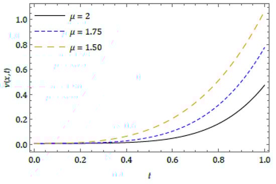 2D graph of -homotopy analysis transform method ( -HATM) solution at and with distinct for Example 1.
