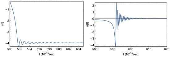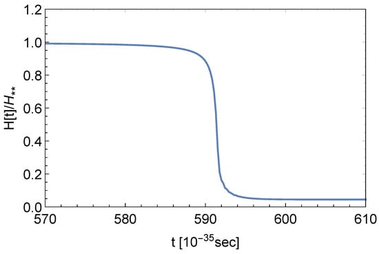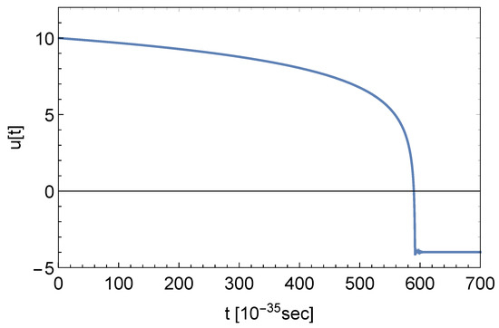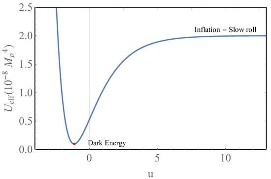 - (iii) As it will be explicitly exhibited in the dynamical system analysis in Section 4, the region of u around the stable minimum at (41) corresponds to the late-time de Sitter expansion of the universe with a slightly varied late-time Hubble parameter (dark energy dominated epoch), wherein the minimum value of the potential:is the asymptotic value at of the dynamical dark energy density [165,166].