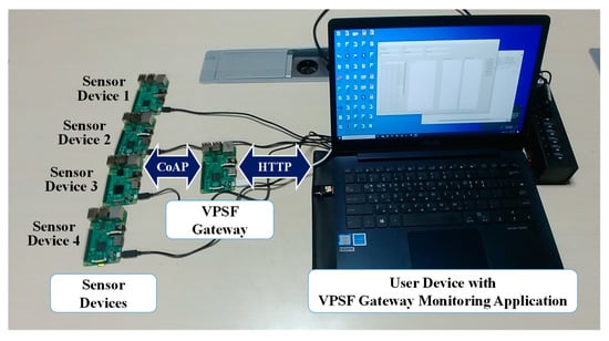 The VPSF performance was evaluated through implementation and extensive experiments. The user device was implemented using a personal computer running the Windows 10 OS, and the VPSF gateway and sensor devices were implemented using the open-source hardware Raspberry Pi 3 Model B+ running the Linux-based Raspbian OS.