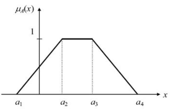 A set is a collection of both concrete and abstract objects which have certain common characteristics. A crisp set is a set that is well defined, meaning that each of the elements in the universal set can always be determined whether it is an element/member of the set [,,]. Normally, a set is characterized by a function, i.e., a function of universal set X to the set {0,1} where 0 (zero) is not an element and 1 (one) is an element. The crisp set is a set of real numbers of which has membership function expressed by a mathematical formula. The triangular fuzzy number and trapezoidal fuzzy number are the most widely used [] and this study used fuzzy numbers with trapezium membership functions or trapezoidal fuzzy numbers.