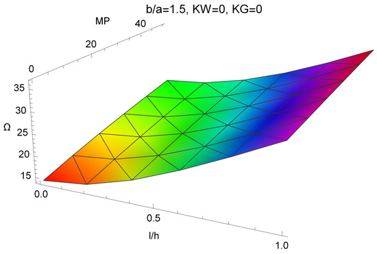 In (25) stand for unknown coefficients, , and g is shape function selected depending on the boundary conditions and shape of the plate, whereas is a system of the power polynomials. For the rectangular plate with sides a and b, the shape function is taken as