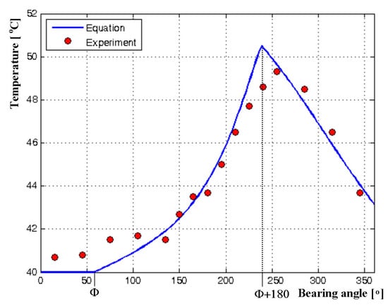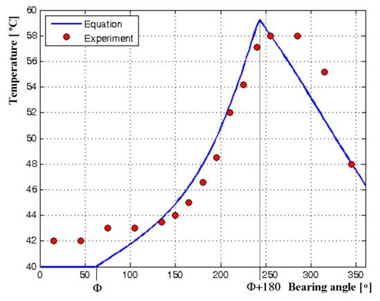 In order to validate the mathematical model of temperature distribution in a journal bearing oil film (Equation (41)), the experimental results given in the reference [25] were used. In that sense, the bearing parameters were also taken from the reference [25] and are presented in Table 1.