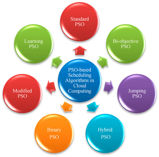 10. Masdari, M.; Salehi, F.; Jalali, M.; Bidaki, M. A Survey of PSO-Based Scheduling Algorithms in Cloud Computing. J. Netw. Syst. Manag. 2017, 25, 122–158. [Google Scholar] [CrossRef]
