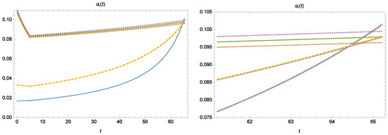 In Equations (26) and (27), and are beta functions. Here, the RG flow of the gauge couplings is explored in the two-loop approximation. In this approximation,