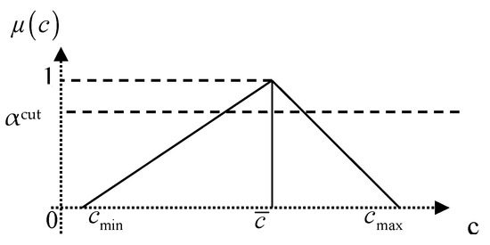This section describes the fuzzy attribute control charts used as the basis for the development of the FBP chart. In univariate cases, it is appropriate to use Poisson distribution, as reviewed by Zarandi, Turksen and Kashan [6] and Hsieh Ting and Wang [7]. One of the fuzzy control charts developed based on the Poisson distribution is the fuzzy c control chart. Gulbay, Kahraman and Ruan [4] proposed a fuzzy chart with a triangular membership function (TFN). The principle of this chart is to construct the TFN representation of , where is the number of average nonconformities for the samples initially available. In the shape of the TFN, is the minimum value of , is the maximum value of , and is the crisp with a membership function equal to 1 (see Figure 1). The Shewhart control limits are adopted to construct the control limits of the fuzzy c chart.
