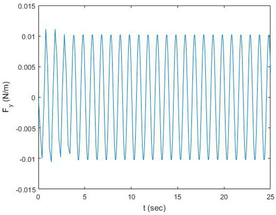 Essentially improve the blending execution, and the liquids are near finished blending. At the middle time, the von Karman vortexes are formed but the particles do not mix yet. At the final time, the von Karman vortexes are formed, and the particles are mixed. The cylinder moves under the influence of the steady flow that is simulated, not due to externally applied force. When the viscous and pressure force is applied on cylinder, it makes a motion as a self-sustained motion. As shown, the maximum diversion of particles is found at the von Karman vortexes, while, in the back of the cylinder, rare particles exist. The regime extends to the end of the microchannel while the rare number of particles are shown in the mid-line of the channel. These phenomena can be used for bead separation in microchannels. Total normal force versus time applied to the moving cylinder is illustrated in Figure 5.