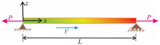In Figure 1, a viscoelastic AFG moving beam is depicted. It is supposed that the beam with simply supported boundary conditions moves with a constant velocity V and is subjected to axial tension load P. Length, cross-sectional area. as well as moment of inertia of the beam are denoted by L, A, and I, respectively.