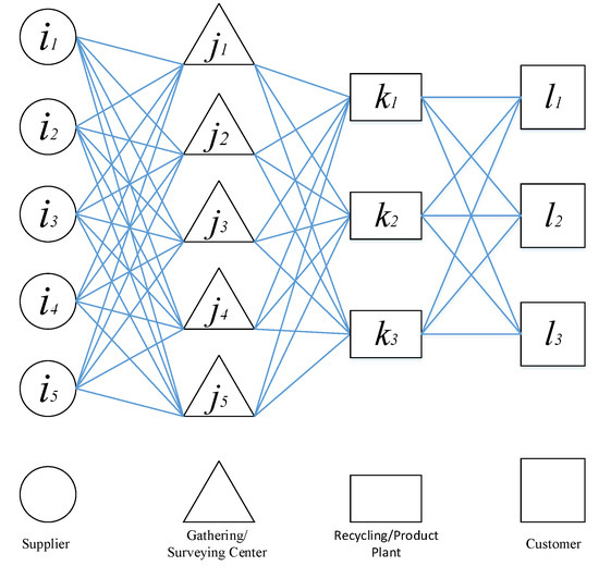 The reverse logistics network, as part of the SC, means the accurate, correct and timely transmission of materials and the kinds of goods that are usable and unusable from the endpoint (last consumer or end-user) through the SC to the appropriate plant. In other words, reverse logistics is the process of moving and transferring goods and products that can be returned through the SC [3]. In this regard, the most important factor that is recognized in technical and economic studies of supply chains is the demand parameter, which should be considered in the design of forward or reverse supply chain networks (SCNs) [4,5,6,7].