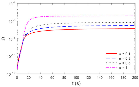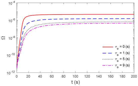 The full spectrum of the local thermal condition can be described through the standard thermal condition using the definition of the fractional derivative given in Equation (2). The different values of fractional parameter cover two types of conductivity: for low conductivity and for normal conductivity. Here, is the thermal conductivity of tissue, is the rate of blood perfusion, is the time, is the blood mass density, is the tissue mass density, is the blood temperature, is the tissue temperature, is the thermal relaxation time, is the specific heat of tissues, is the specific heat of blood, is the metabolic heat generations in living tissue, and refers to the heat generated per unit volume of tissues. Gardner et al. [26] suggested the laser thermal source form by the following: