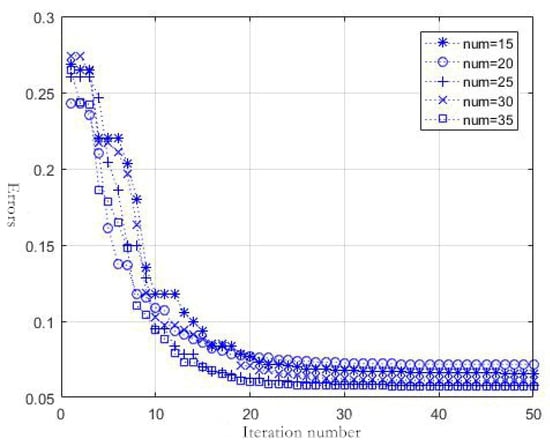 It is observed from Figure 3 and Table 3 that when the initial swarms are increased to a given number, the increased precision slows down, but the time consumed for the training of the model is largely linearly increased. Meanwhile, when the number of iterations reaches 20, the precision remains basically unchanged. Therefore, this paper chooses initial swarm number at 25, and maximal iteration number at 25.