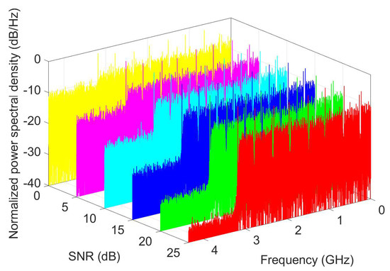 where represents the baseband AWGN signal, which may be clearly observed through the SNR at the frequency domain (see Figure 9).