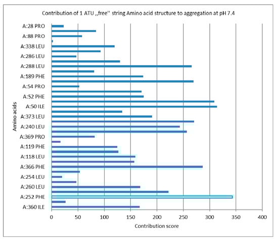 Aggregation score of the native protein, 1 ATU free string, most significant Aa contribution is highlighted (see Supplementary Materials-S3).