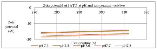Zeta potential of 1ATU at different pH and temperature domains.